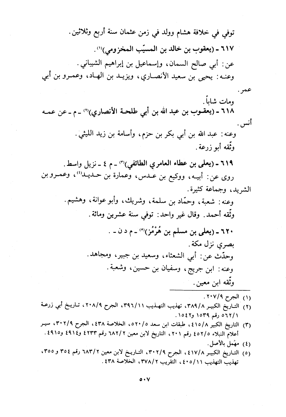 [5] التاريخ الكبير 8/ 417، الجرح 9/ 302، التاريخ لابن معين 2/ 683 رقم 354 و 355، تهذيب التهذيب 11/ 405، التقريب 2/ 378، الخلاصة 438.