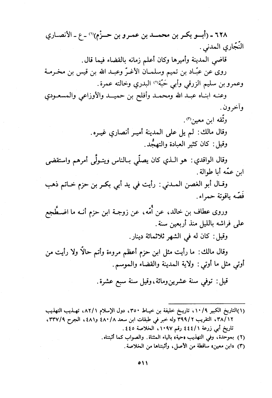 628- (أَبُو بَكْرِ بْنُ مُحَمَّدِ بْنِ عَمْرِو بْنِ حَزْمٍ) [1]- ع- الأنصاري النّجّاري المدني.