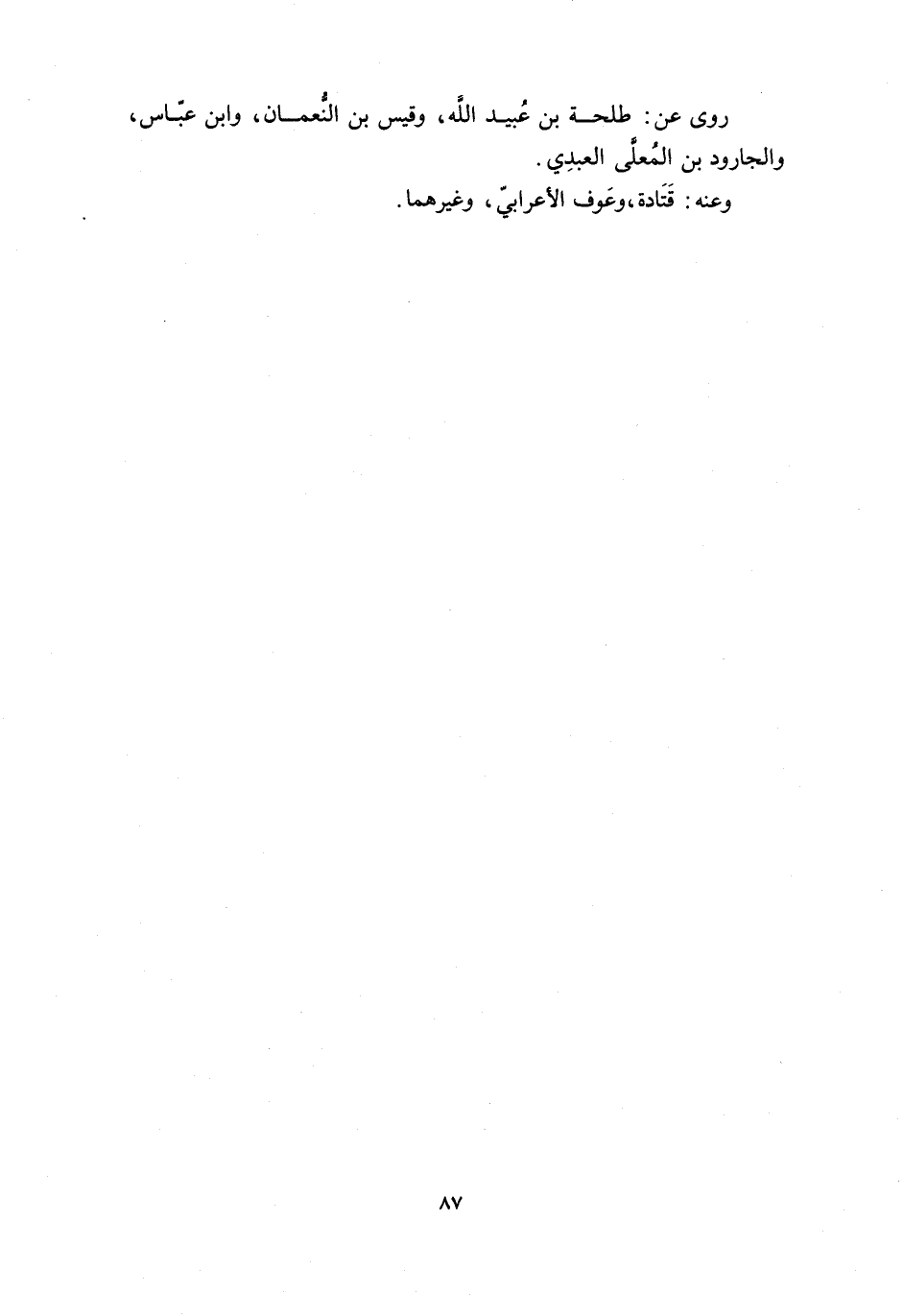 رَوَى عَنْ: طَلْحَةَ بْنِ عُبَيْدِ اللَّهِ، وَقَيْسِ بْنِ النُّعْمَانِ، وَابْنِ عَبَّاسٍ، وَالْجَارُودِ بْنِ الْمُعَلَّى الْعَبْدِيِّ.