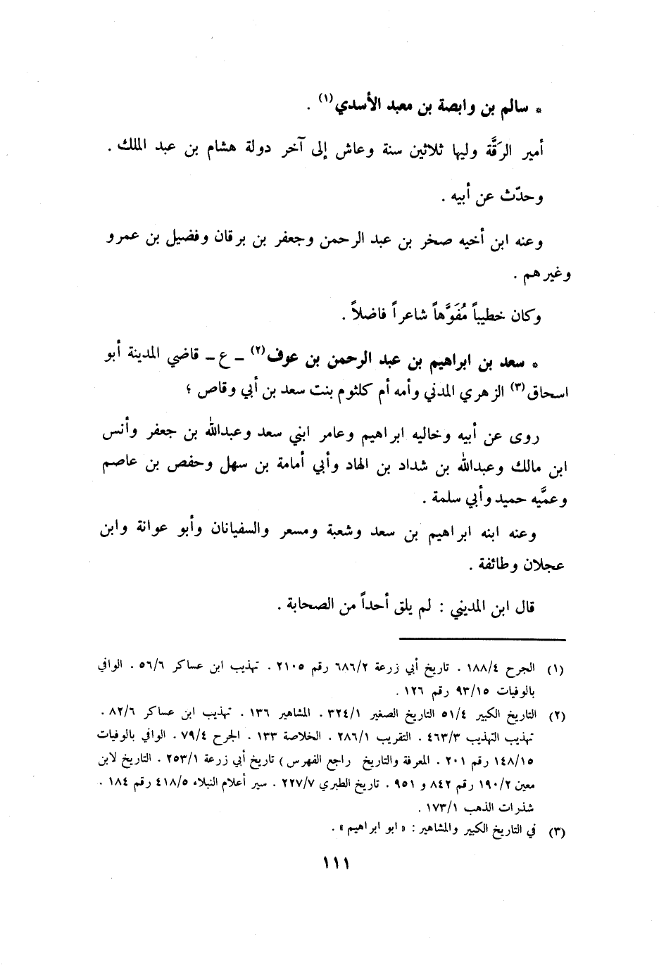 [1] الجرح 4/ 188. تاريخ أبي زرعة 2/ 686 رقم 2105. تهذيب ابن عساكر 6/ 56. الوافي بالوفيات 15/ 93 رقم 126.
