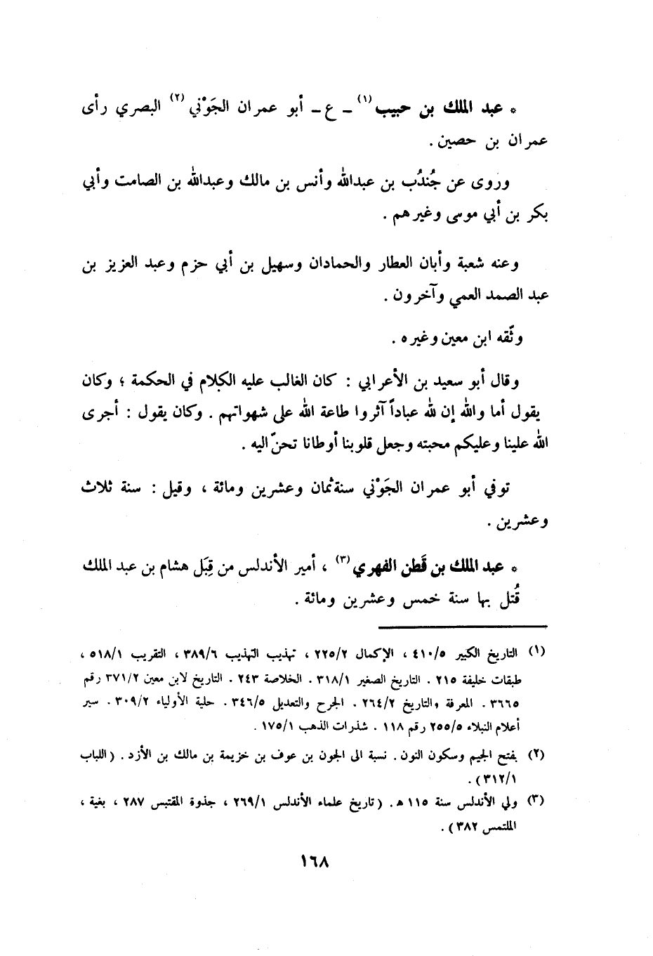 عبد الملك بن حبيب [1]- ع- أبو عمران الجوني [2] البصري رَأَى عِمْرَانَ بْنَ حُصَيْنٍ.