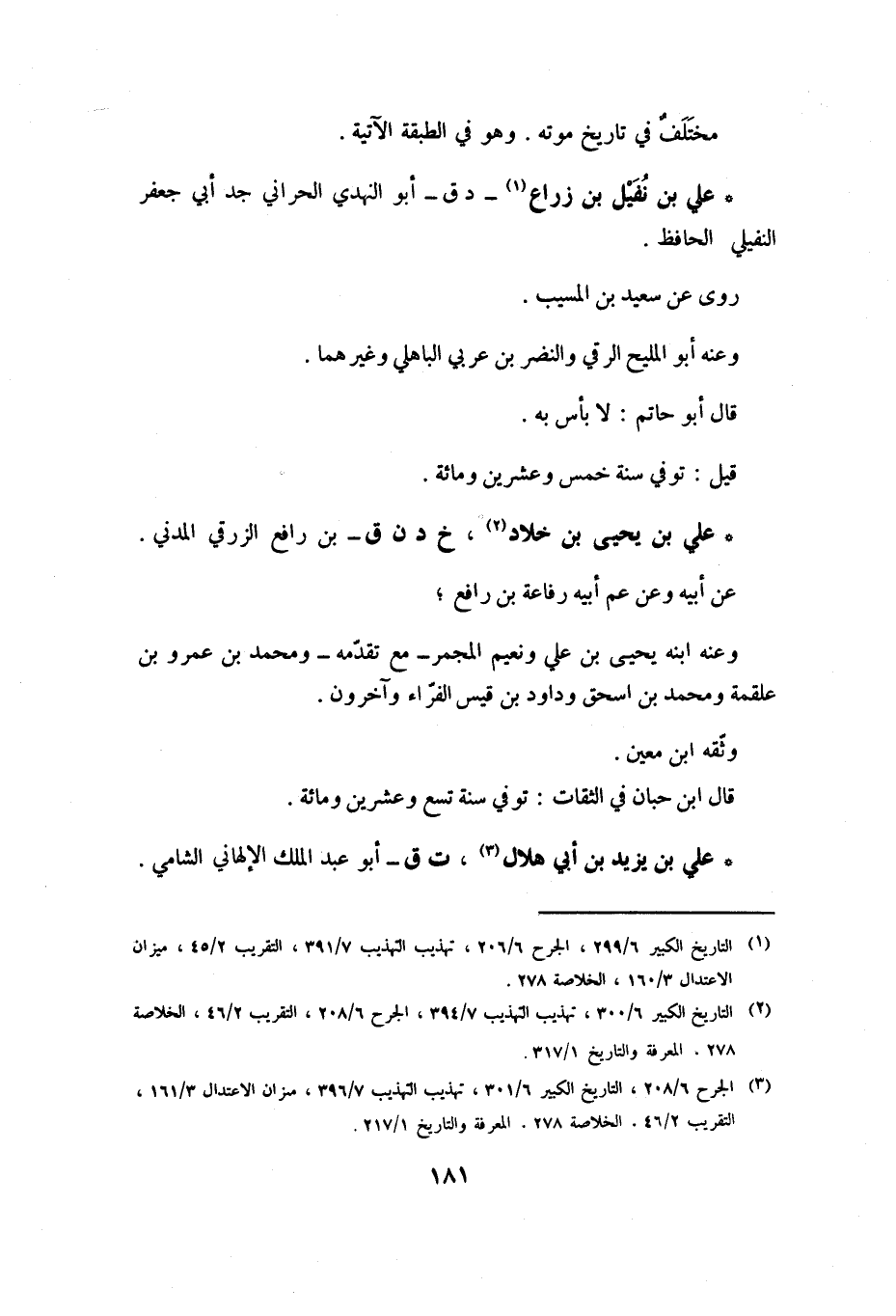 [2] التاريخ الكبير 6/ 300، تهذيب التهذيب 7/ 394، الجرح 6/ 208، التقريب 2/ 46، الخلاصة 278، المعرفة والتاريخ 1/ 317.