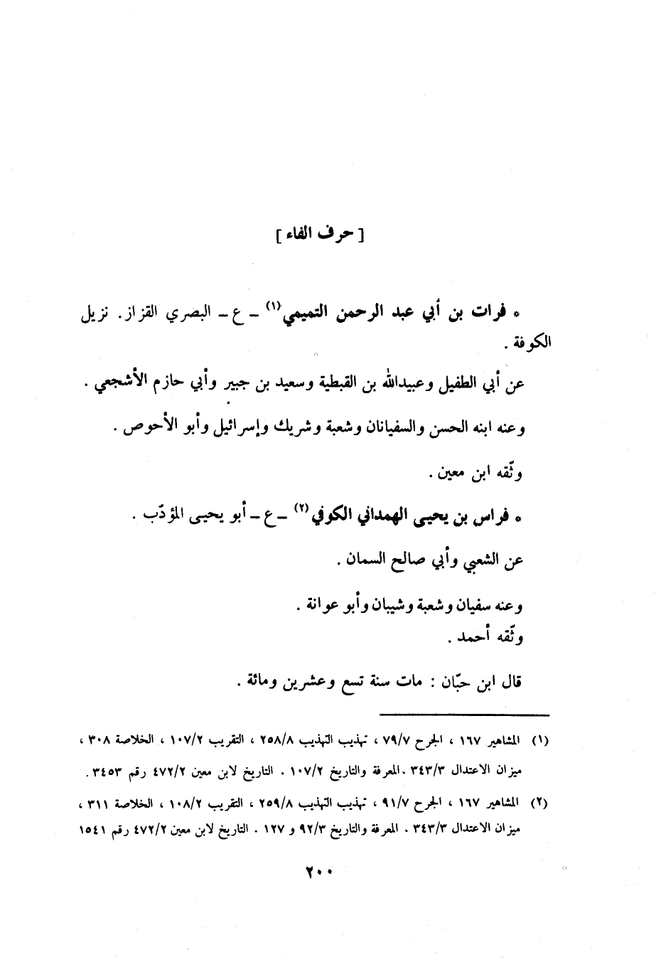 [2] المشاهير 167، الجرح 7/ 91، تهذيب التهذيب 8/ 259، التقريب 2/ 108، الخلاصة 311، ميزان الاعتدال 3/ 343، المعرفة والتاريخ 3/ 92 و 127. التاريخ لابن معين 2/ 472 رقم 1541.