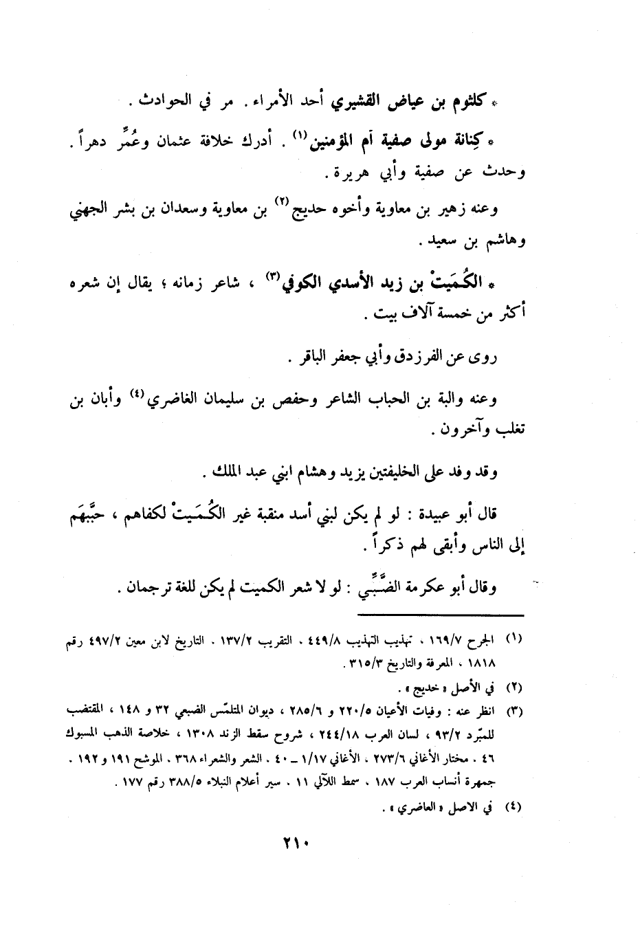 الْكُمَيْتُ بْنُ زَيْدٍ الأَسَدِيُّ الْكُوفِيُّ [3] ، شَاعِرُ زَمَانَهُ، يُقَالُ إِنَّ شِعْرَهُ أَكْثَرُ مِنْ خَمْسَةِ آلافِ بَيْتٍ.