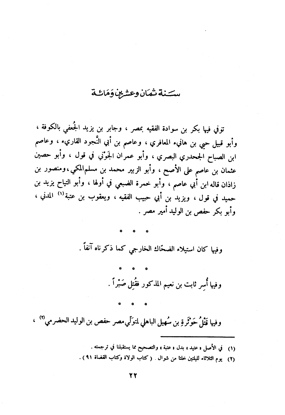وَفِيهَا قَتْلُ حَوْثَرَةِ بْنِ سُهَيْلٍ الْبَاهِلِيِّ لِمُتَوَلِّي مِصْرَ حَفْصِ بْنِ الْوَلِيدِ الْحَضْرَمِيِّ [2] ،