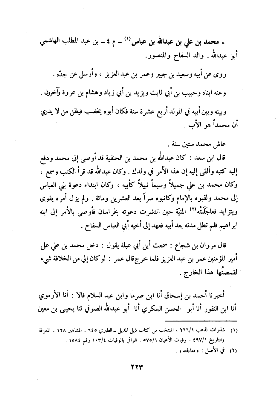 محمد بْن علي بْن عَبْد اللَّه بْن عباس [1]- م 4- بْنِ عَبْدِ الْمُطَّلِبِ الْهَاشِمِيِّ أَبُو عَبْدِ اللَّهِ. وَالِدُ السَّفَّاحِ وَالْمَنْصُورِ.