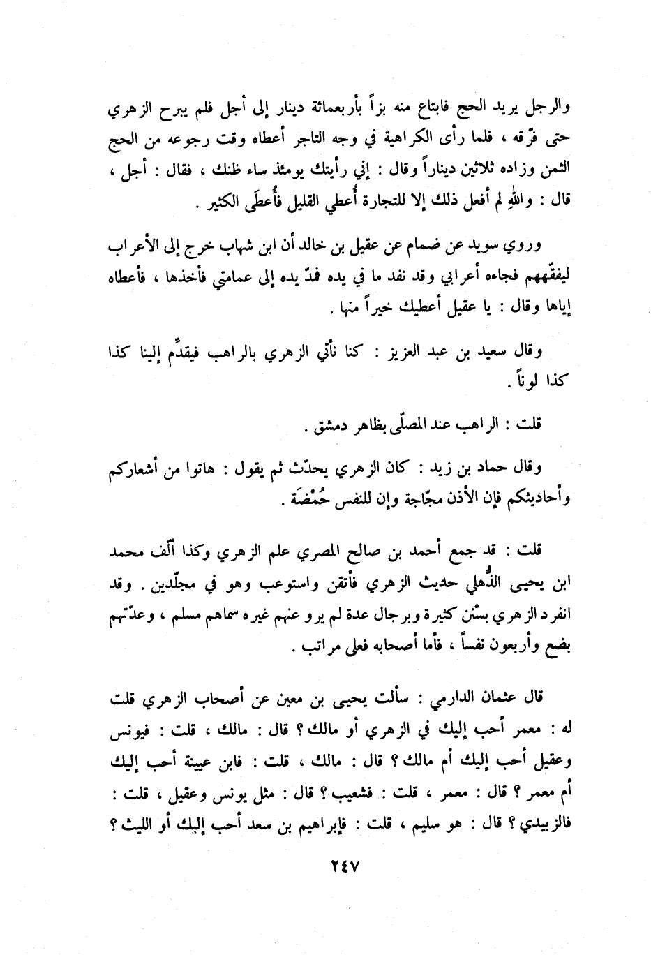 قُلْتُ: قَدْ جَمَعَ أَحْمَدُ بْنُ صَالِحٍ الْمِصْرِيُّ عِلْمَ الزهري وكذا ألّف محمد ابن يَحْيَى الذُّهْلِيُّ حَدِيثَ الزُّهْرِيِّ فَأَتْقَنَ وَاسْتَوْعَبَ وَهُوَ فِي مُجَلَّدَيْنِ. وَقَدِ انْفَرَدَ الزُّهْرِيُّ بِسُنَنٍ كَثِيرَةٍ وَبِرِجَالٍ عِدَّةٍ لَمْ يَرْوِ عَنْهُمْ غَيْرُهُ سَمَّاهُمْ مُسْلِمٌ، وَعِدَّتُهُمْ بِضْعٌ وَأَرْبَعُونَ نَفْسًا، فَأَمَّا أَصْحَابُهُ فَعَلَى مَرَاتِبَ.