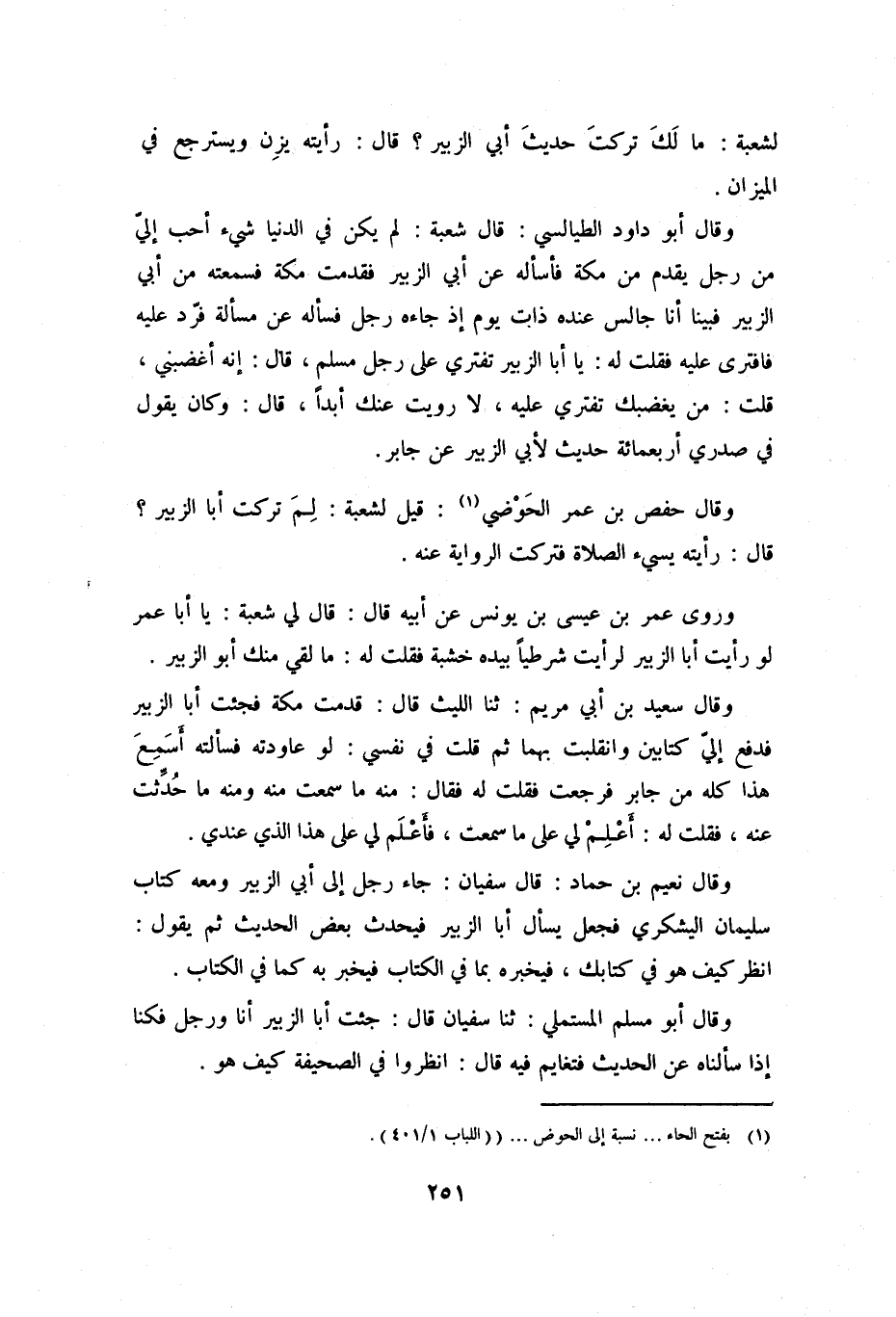 وَقَالَ حَفْصُ بْنُ عُمَرَ الْحَوْضِيُّ [1] : قِيلَ لِشُعْبَةَ: لِمَ تَرَكْتَ أَبَا الزُّبَيْرِ؟