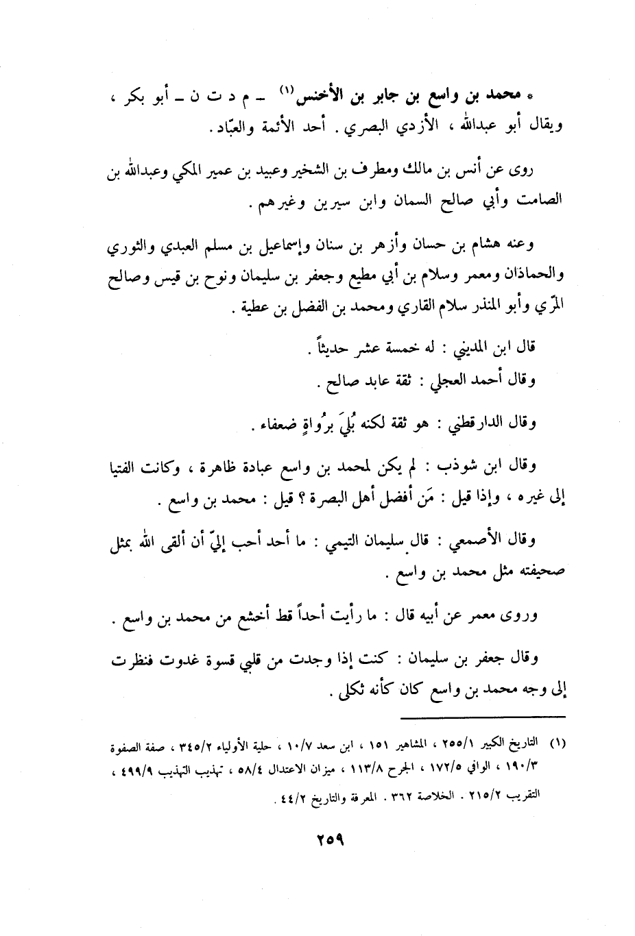 مُحَمَّدُ بْنُ وَاسِعِ بْنِ جَابِرِ بْنِ الأَخْنَسِ [1]- م د ت ن- أَبُو بَكْرٍ، وَيُقَالُ أَبُو عَبْدِ اللَّهِ، الأَزْدِيُّ البصري. أَحَدُ الأَئِمَّةِ وَالْعُبَّادِ.