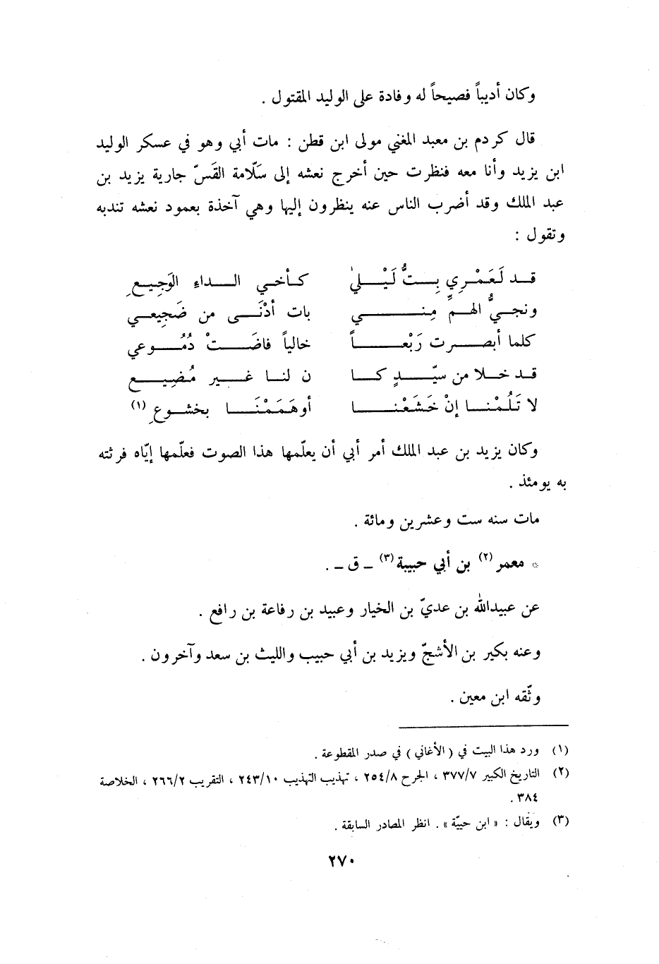 وَكَانَ أَدِيبًا فَصِيحًا لَهُ وِفَادَةٌ عَلَى الْوَلِيدِ الْمَقْتُولِ.
