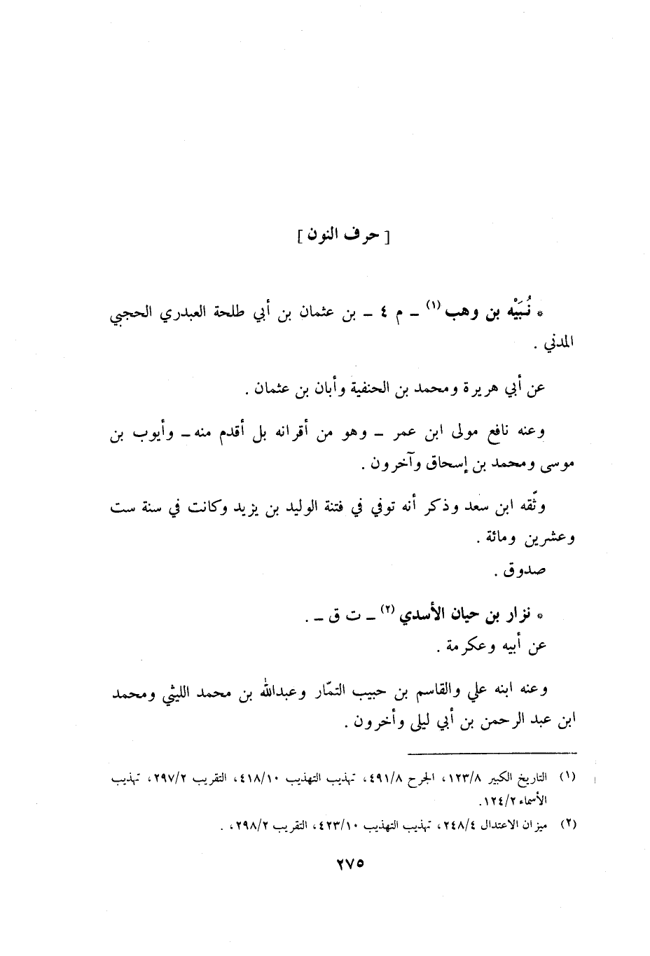 [1] التاريخ الكبير 8/ 123، الجرح 8/ 491، تهذيب التهذيب 10/ 418، التقريب 2/ 297، تهذيب الأسماء 2/ 124.