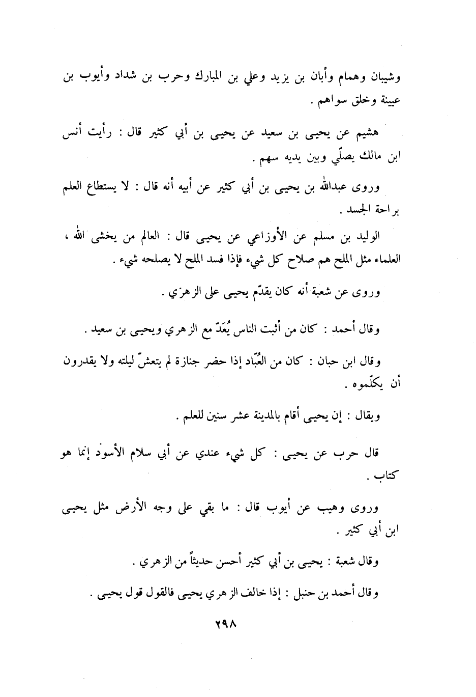 وَرَوَى عَنْ شُعْبَةَ أَنَّهُ كَانَ يُقَدِّمُ يَحْيَى عَلَى الزُّهْرِيِّ.