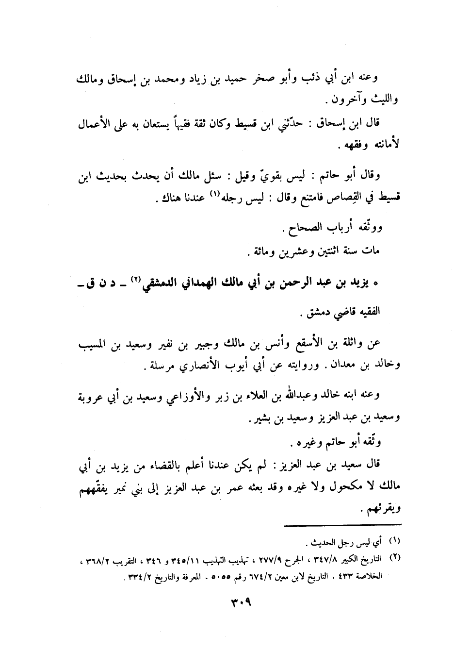 يَزِيدُ بْنُ عَبْدِ الرَّحْمَنِ بْنِ أَبِي مَالِكٍ الهمدانيّ الدمشقيّ [2]- د ن ق- الفقيه قَاضِي دِمَشْقَ.