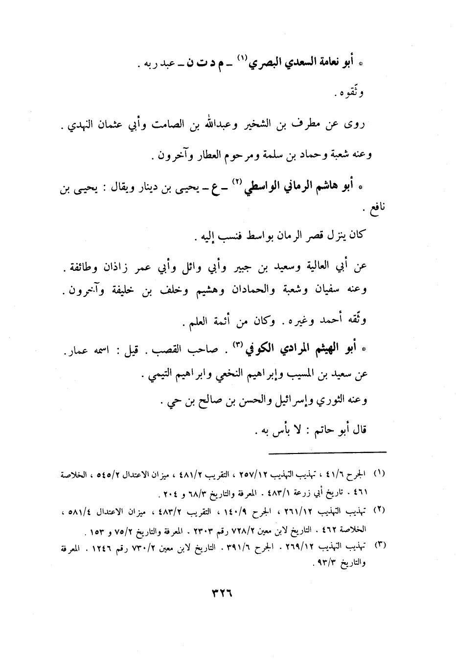 [3] تهذيب التهذيب 12/ 269. الجرح 6/ 391، التاريخ لابن معين 2/ 730 رقم 1246. المعرفة والتاريخ 3/ 93.
