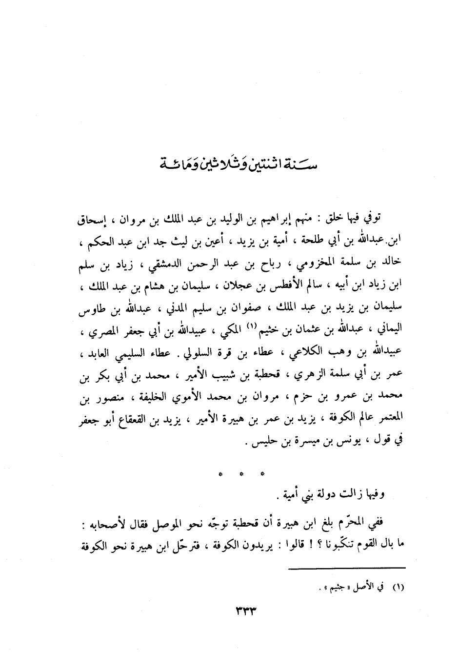 سَنَةَ اثْنَتَيْنِ وَثَلاثِينَ وَمِائَةٍ