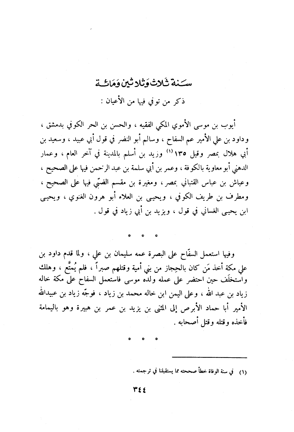سَنَةَ ثَلاثٍ وَثَلاثِينَ وَمِائَةٍ
