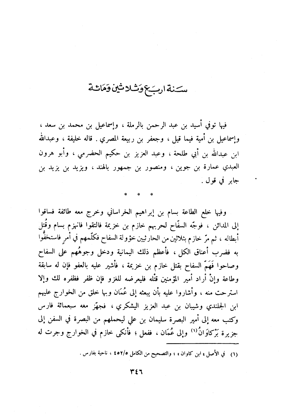 سَنَةَ أَرْبَعٍ وَثَلاثِينَ وَمِائَةٍ