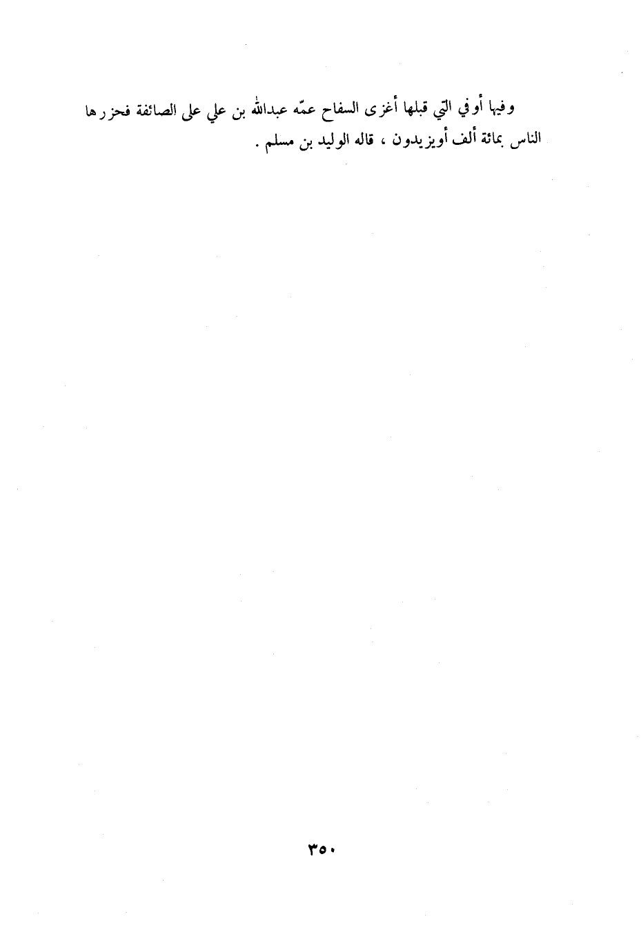 وفيها أو في التي قبلها أغزى السَّفَّاحُ عَمَّهُ عَبْدَ اللَّهِ بْنَ عَلِيٍّ عَلَى الصَّائِفَةِ فَحَزِرَهَا النَّاسُ بِمِائَةِ أَلْفٍ أَوْ يَزِيدُونَ، قَالَهُ الْوَلِيدُ بْنُ مُسْلِمٍ.