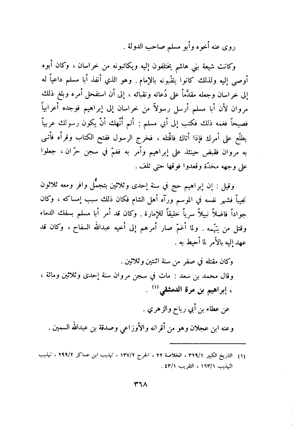 وَقَالَ مُحَمَّدُ بْنُ سَعْدٍ: مَاتَ فِي سِجْنِ مَرْوَانَ سَنَةَ إِحْدَى وَثَلاثِينَ وَمِائَةٍ، إِبْرَاهِيمُ بْنُ مُرَّةَ الدِّمَشْقِيُّ [1] .
