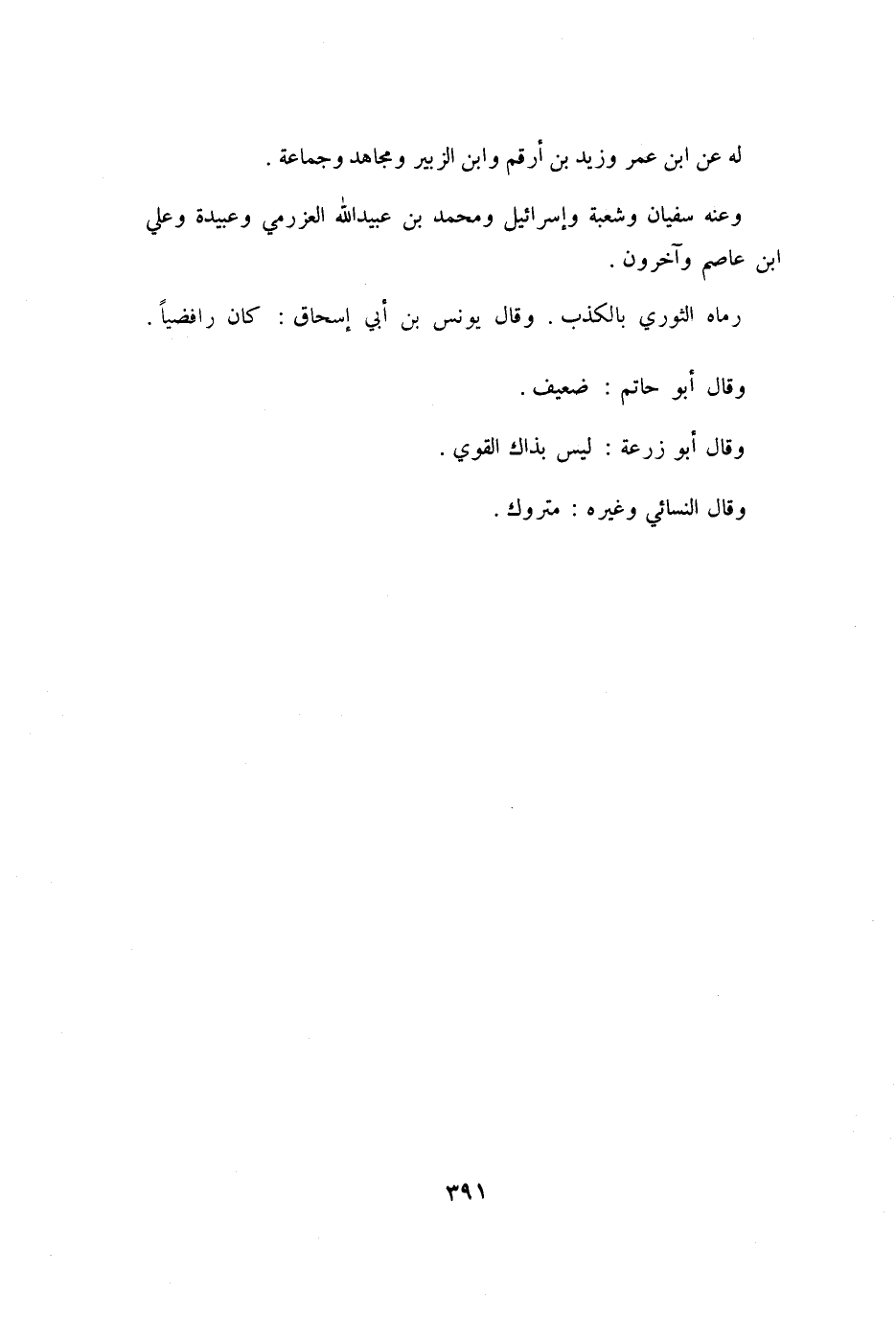 رَمَاهُ الثَّوْرِيُّ بِالْكَذِبِ. وَقَالَ يُونُسُ بْنُ أَبِي إِسْحَاقَ: كَانَ رَافِضِيًّا.