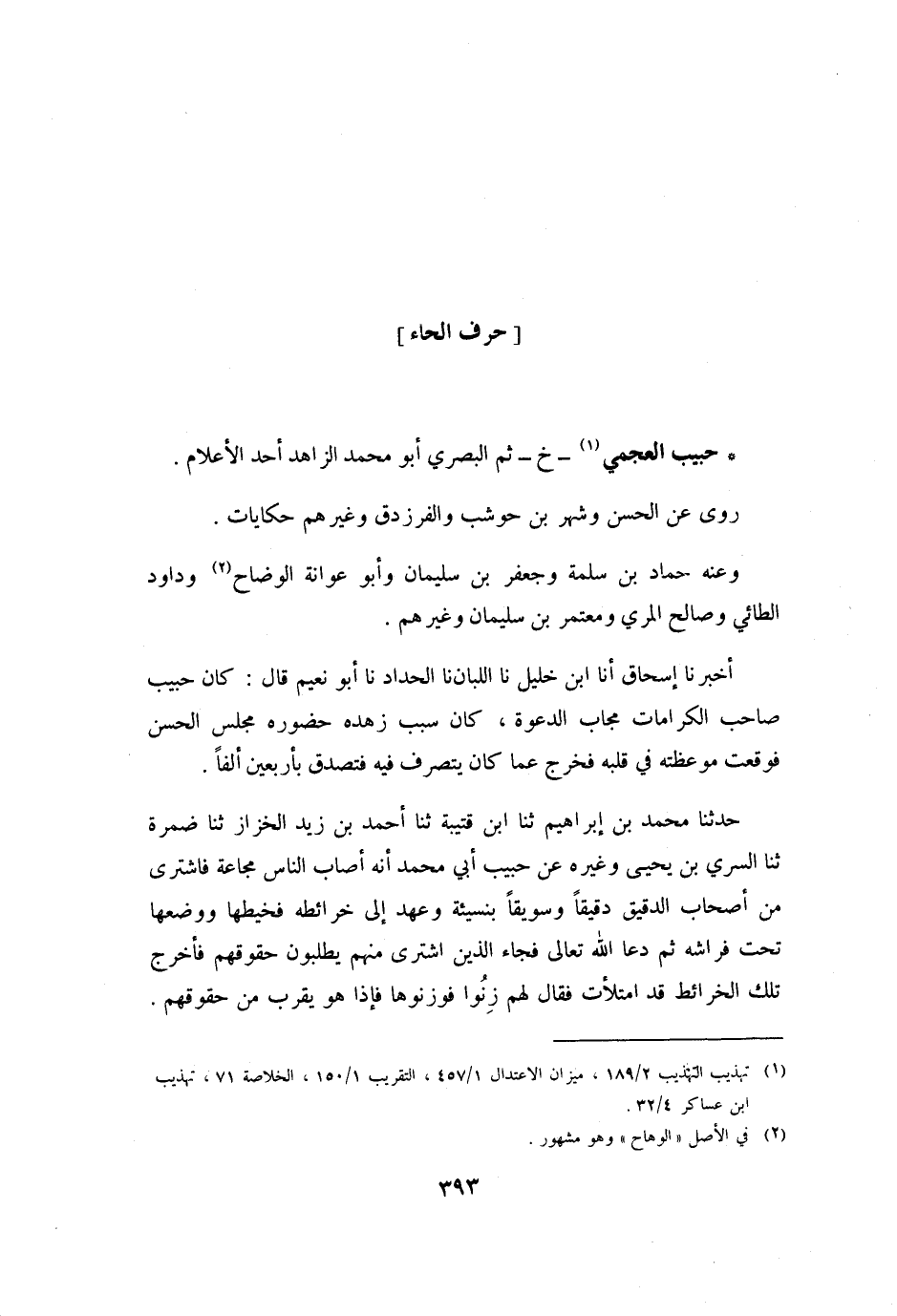 [1] تهذيب التهذيب 2/ 189، ميزان الاعتدال 1/ 457، التقريب 1/ 150، الخلاصة 71، تهذيب ابن عساكر 4/ 32.