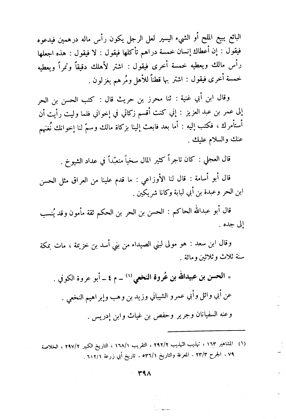 الْحَسَنُ بن عبيد الله بن عروة النخعي [1]- م 4- أبو عروة الكوفي.
