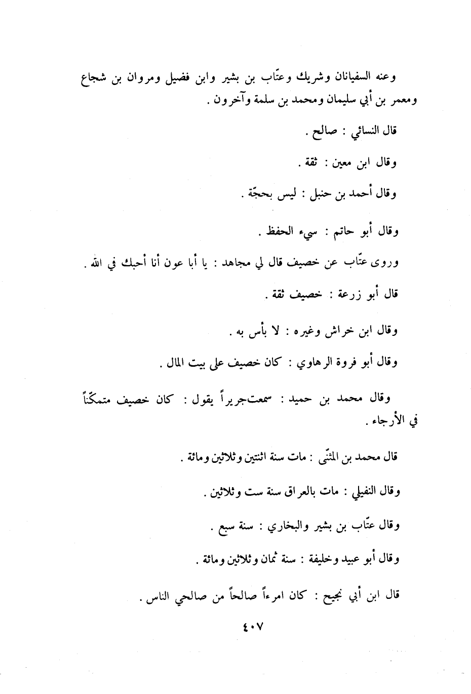 وَقَالَ مُحَمَّدُ بْنُ حُمَيْدٍ: سَمِعْتُ جَرِيرًا يَقُولُ: كَانَ خُصَيْفٌ متمكّنا في الأرجاء.
