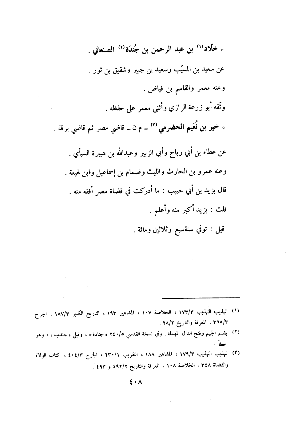 [3] تهذيب التهذيب 3/ 179، المشاهير 188، التقريب 1/ 230، الجرح 3/ 404، كتاب الولاة والقضاة 348. الخلاصة 108. المعرفة والتاريخ 2/ 492 و 493.