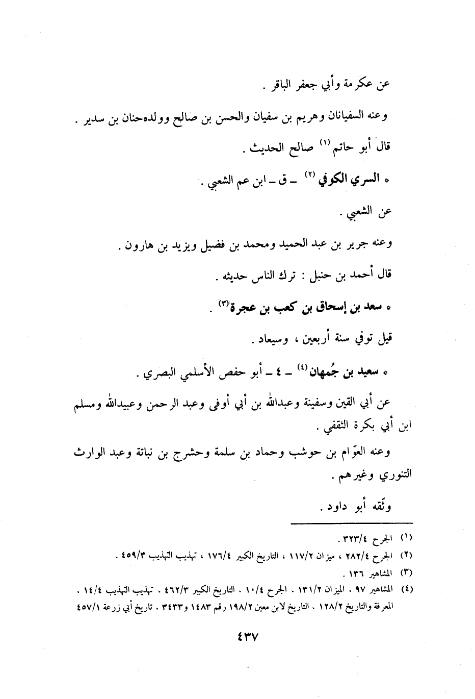 [4] المشاهير 97. الميزان 2/ 131، الجرح 4/ 10، التاريخ الكبير 3/ 462، تهذيب التهذيب 4/ 14.