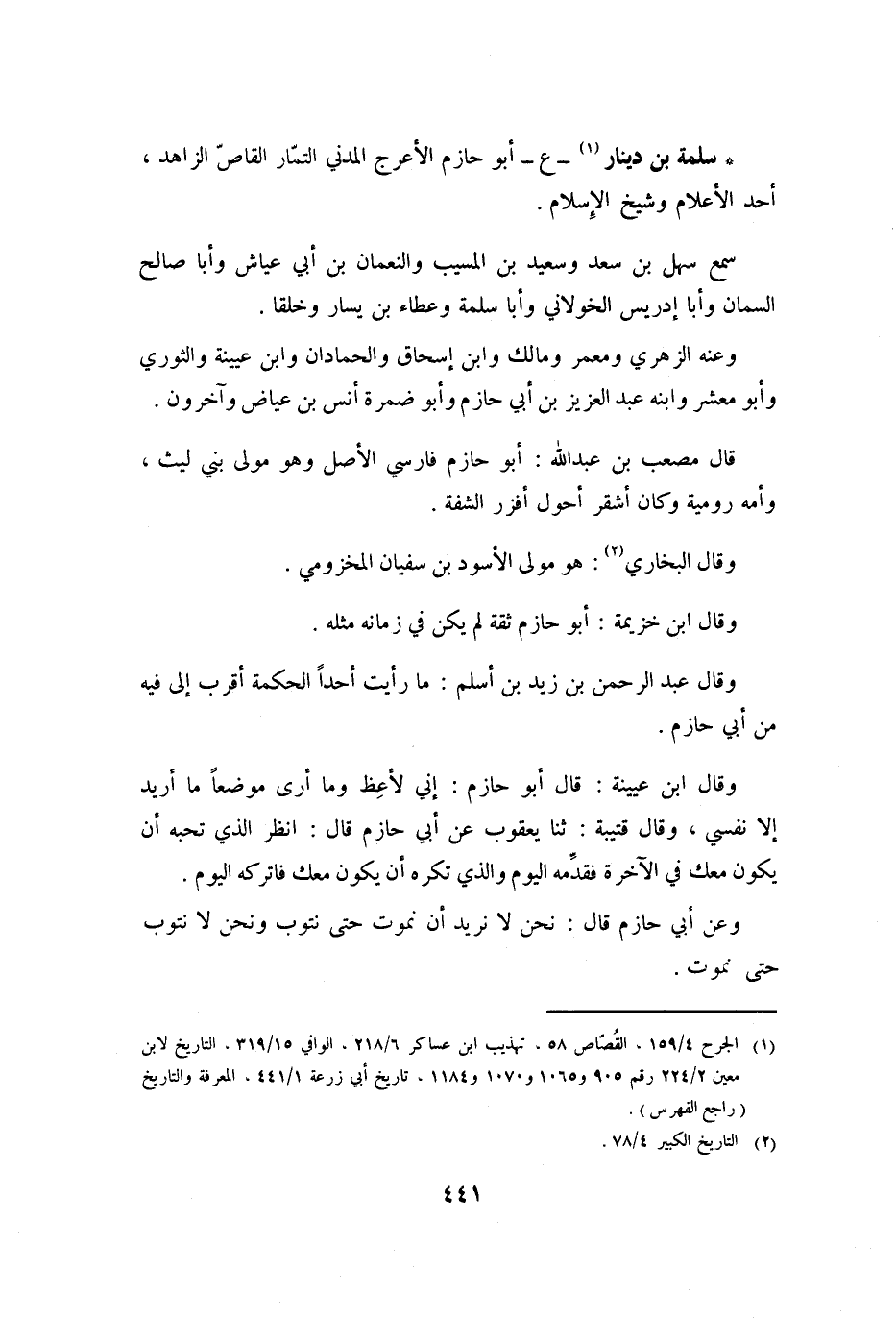 سلمة بن دينار [1]- ع- أَبُو حَازِمٍ الأَعْرَجُ الْمَدَنِيُّ التَّمَّارُ الْقَاصُّ الزَّاهِدُ، أَحَدُ الأَعْلامِ وَشَيْخُ الإِسْلامِ.