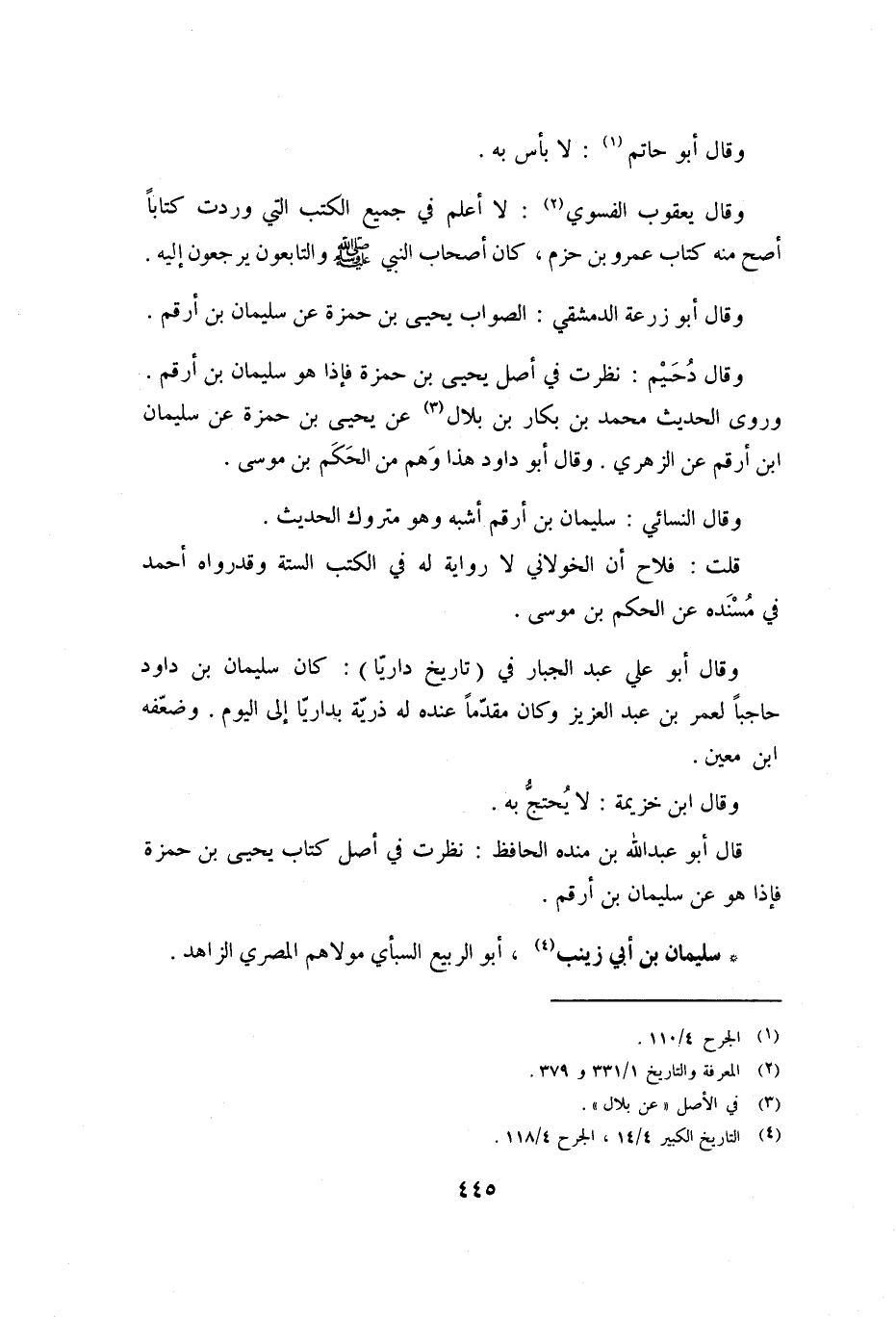 [4] التاريخ الكبير 4/ 14، الجرح 4/ 118.