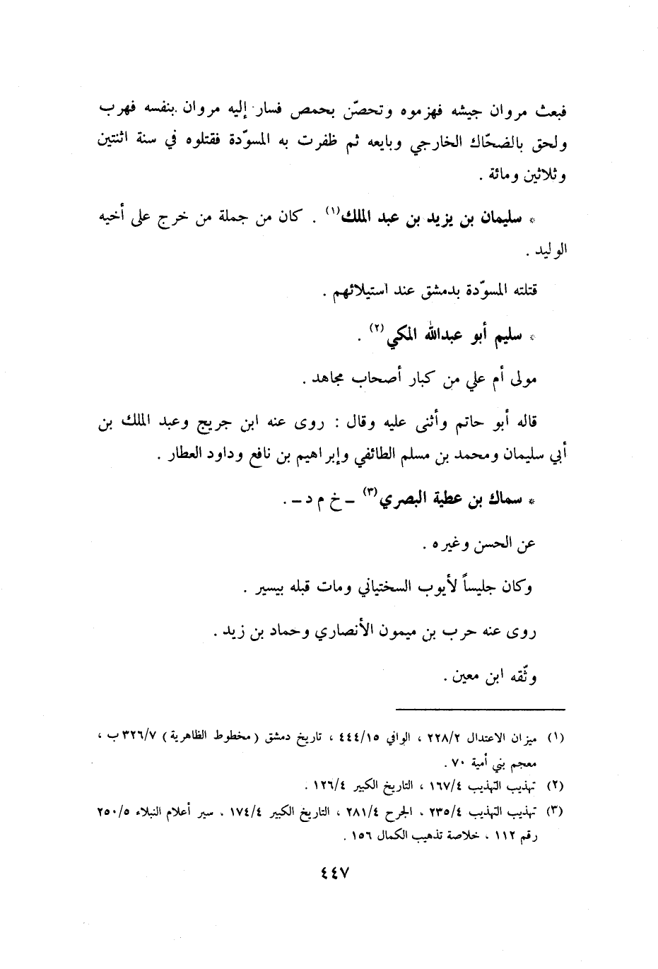 [1] ميزان الاعتدال 2/ 228، الوافي 15/ 444، تاريخ دمشق (مخطوط الظاهرية) 7/ 326 ب، معجم بني أمية 70.