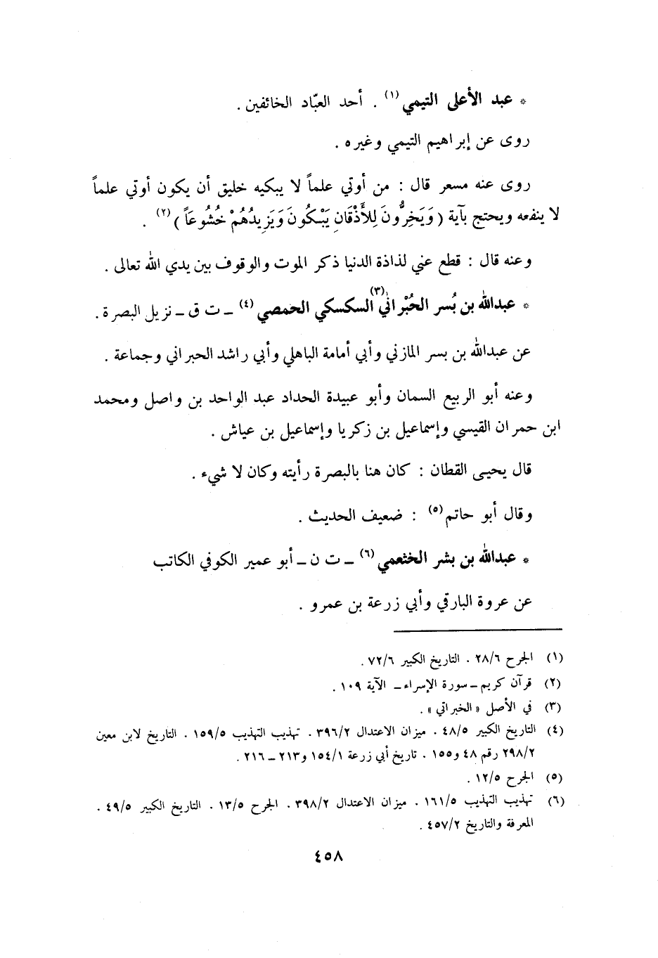 [6] تهذيب التهذيب 5/ 161. ميزان الاعتدال 2/ 398. الجرح 5/ 13. التاريخ الكبير 5/ 49.