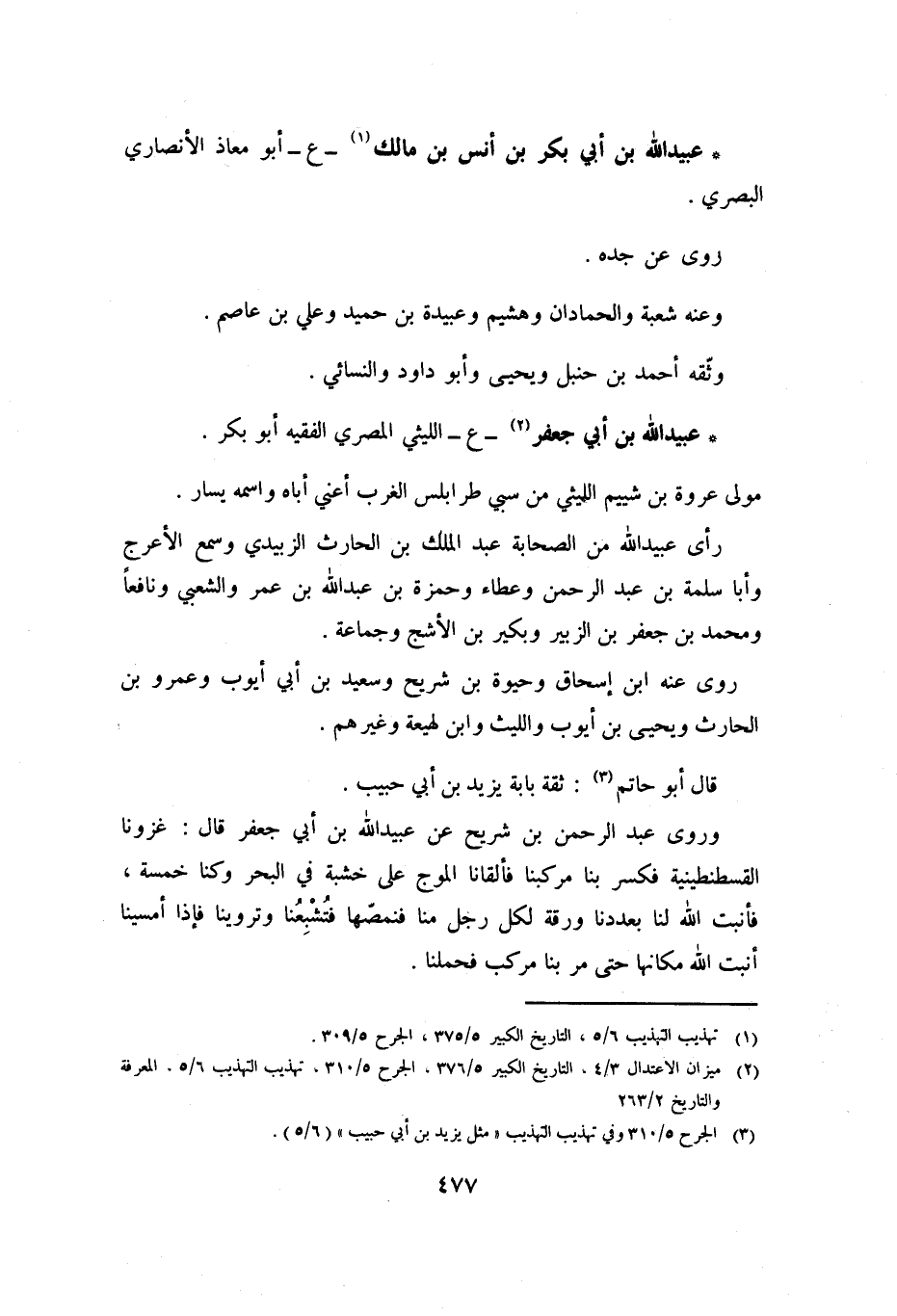[1] تهذيب التهذيب 6/ 5، التاريخ الكبير 5/ 375، الجرح 5/ 309.