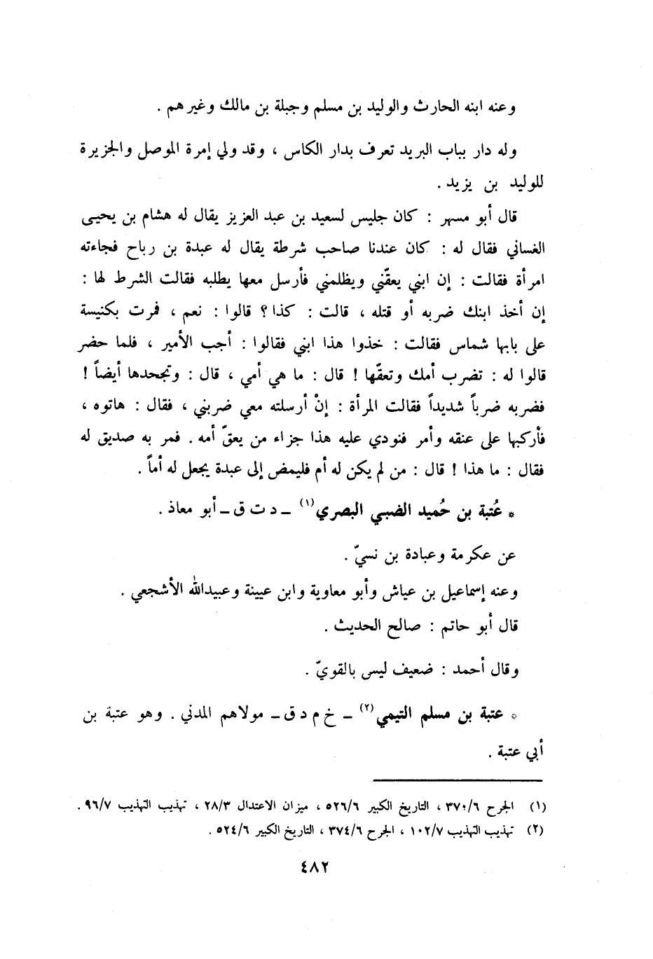 [2] تهذيب التهذيب 7/ 102، الجرح 6/ 374، التاريخ الكبير 6/ 524.