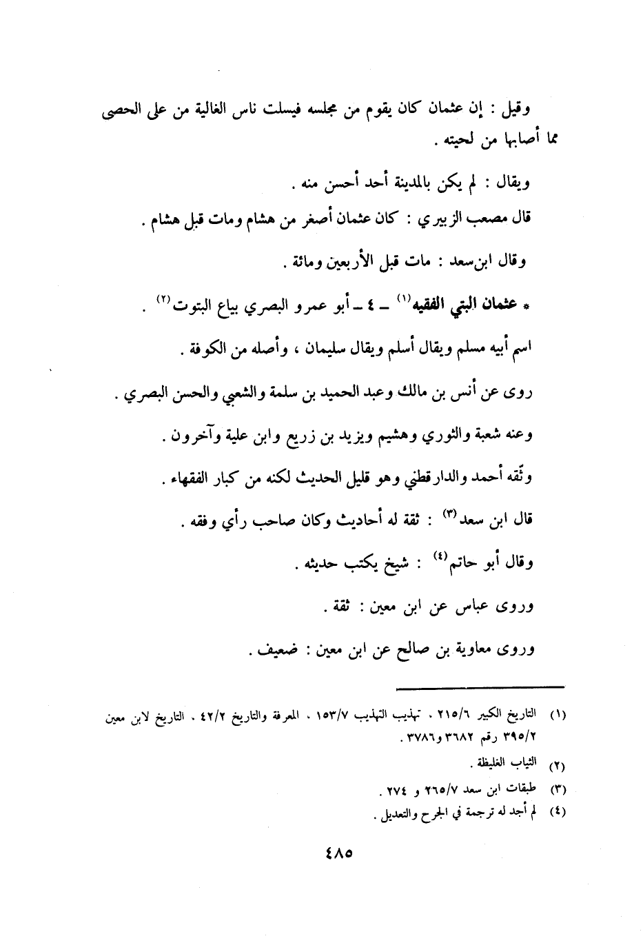 عُثْمَانُ الْبَتِّيُّ الْفَقِيهُ [1]- 4- أَبُو عَمْرٍو الْبَصْرِيُّ بَيَّاعُ الْبُتُوتِ [2] .