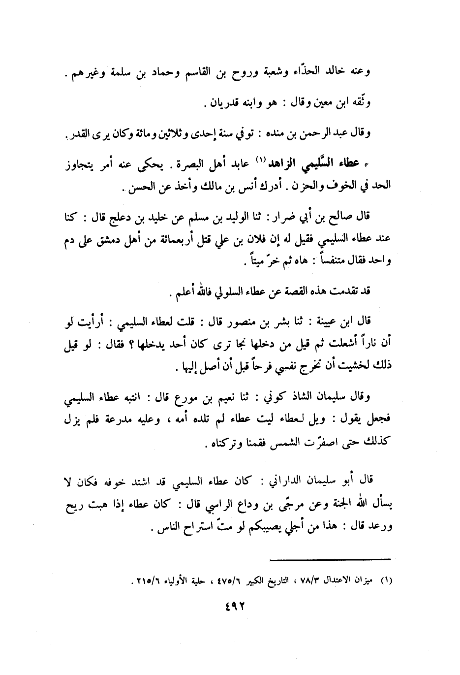 عَطَاءٌ السَّلِيمِيُّ الزَّاهِدُ [1] عَابِدُ أَهْلِ الْبَصْرَةِ. يُحْكَى عَنْهُ أَمْرٌ يَتَجَاوَزُ الْحَدَّ فِي الْخَوْفِ وَالْحُزْنِ. أَدْرَكَ أَنَسَ بْنَ مَالِكٍ وَأَخَذَ عَنِ الْحَسَنِ.