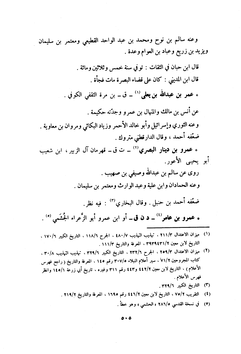 [2] ميزان الاعتدال 3/ 259، الجرح 6/ 232، التاريخ الكبير 6/ 329، تهذيب التهذيب 8/ 30، كتاب المجروحين 2/ 71، سير أعلام النبلاء 5/ 307 رقم 145، المعرفة والتاريخ (راجع فهرس الأعلام) ، التاريخ لابن معين 2/ 442 و 443 رقم 311 وغيره، تاريخ أبي زرعة 1/ 145 وانظر فهرس الأعلام.