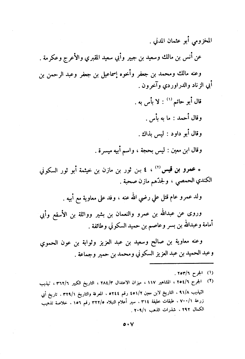 [2] الجرح 6/ 254، المشاهير 117، ميزان الاعتدال 3/ 284، التاريخ الكبير 6/ 362، تهذيب التهذيب 8/ 91، التاريخ لابن معين 2/ 451 رقم 5244، المعرفة والتاريخ 1/ 329. تاريخ أبي زرعة 1/ 700، طبقات خليفة 314، سير أعلام النبلاء 5/ 322 رقم 156، خلاصة تذهيب الكمال 292، شذرات الذهب 1/ 209.