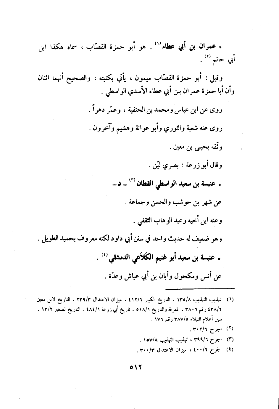 عِمْرَانُ بْنُ أَبِي عَطَاءٍ [1] . هُوَ أَبُو حَمْزَةَ الْقَصَّابُ، سَمَّاهُ هَكَذَا ابْنُ أَبِي حَاتِمٍ [2] .