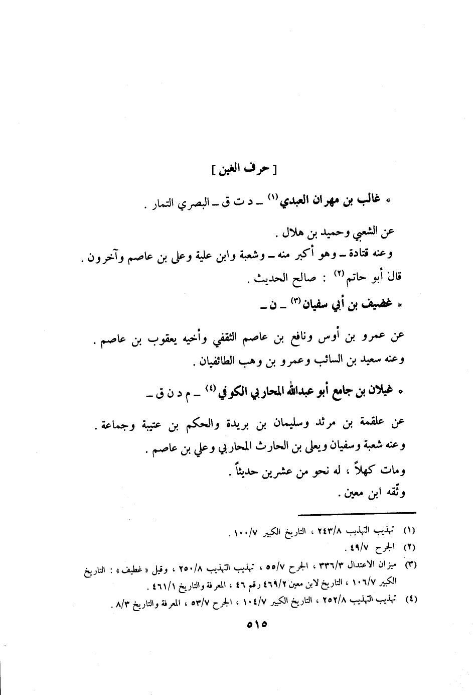[4] تهذيب التهذيب 8/ 252، التاريخ الكبير 7/ 104، الجرح 7/ 53، المعرفة والتاريخ 3/ 8.