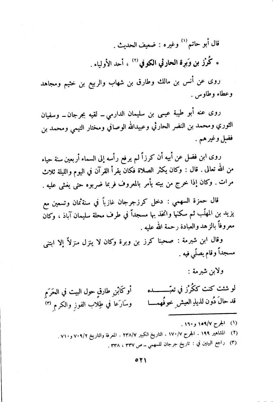 كُرْزُ بْنُ وَبَرَةَ الْحَارِثِيُّ الْكُوفِيُّ [2] ، أَحَدُ الأَوْلِيَاءِ.