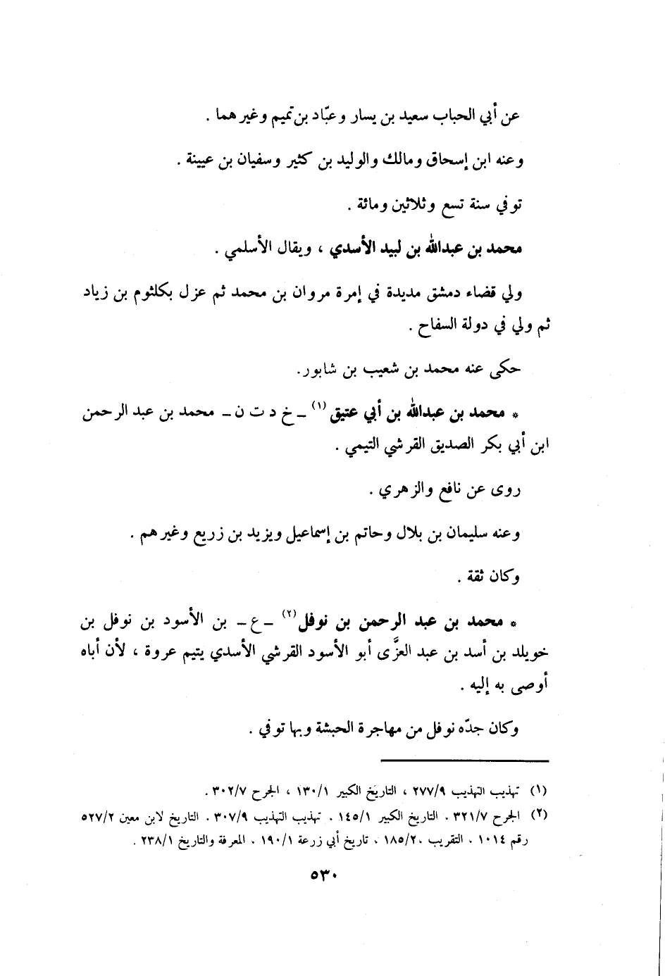 [1] تهذيب التهذيب 9/ 277، التاريخ الكبير 1/ 130، الجرح 7/ 302.