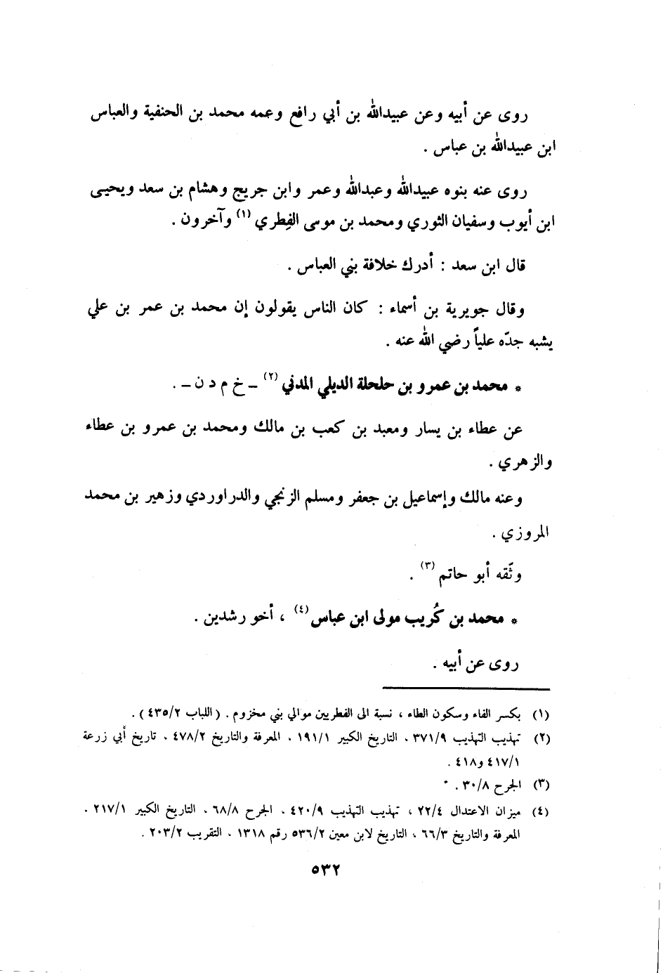[2] تهذيب التهذيب 9/ 371، التاريخ الكبير 1/ 191، المعرفة والتاريخ 2/ 478، تاريخ أبي زرعة 1/ 417 و 418.