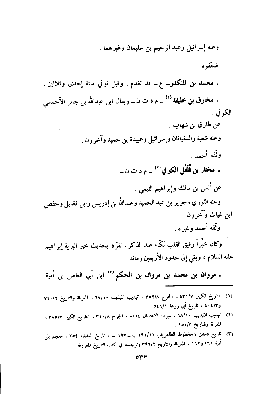 [1] التاريخ الكبير 7/ 431، الجرح 8/ 352، تهذيب التهذيب 10/ 67، المعرفة والتاريخ 2/ 740 و 3/ 404، تاريخ أبي زرعة 1/ 546.