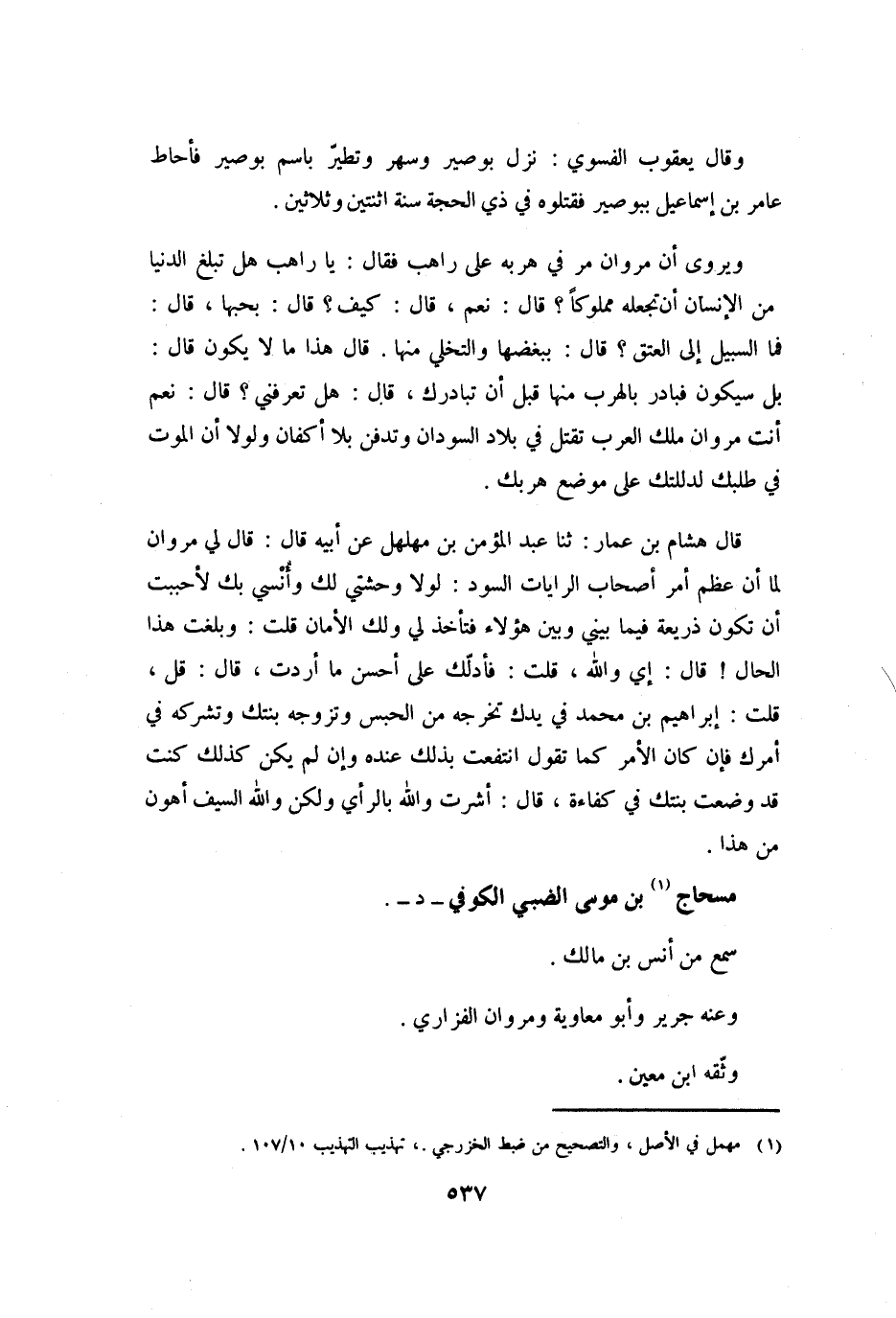 [1] مهمل في الأصل، والتصحيح من ضبط الخزرجي.، تهذيب التهذيب 10/ 107.