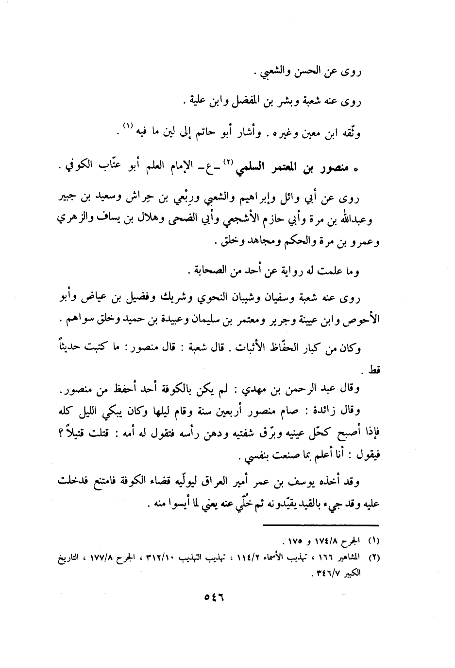 منصور بن المعتمر السلمي [2]- ع- الإمام العلم أبو عتّاب الكوفي.