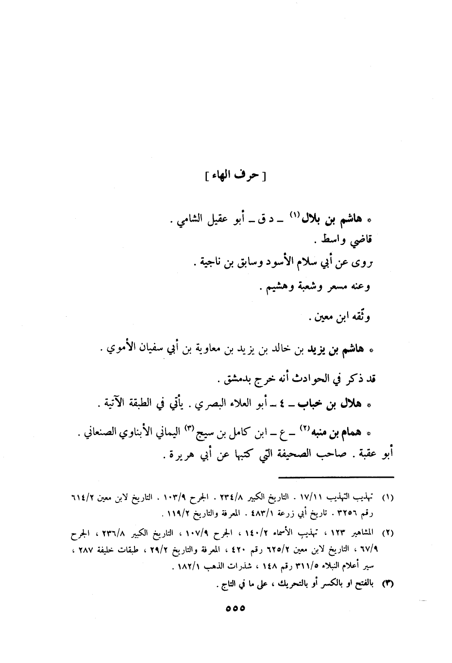 [1] تهذيب التهذيب 11/ 17. التاريخ الكبير 8/ 234. الجرح 9/ 103، التاريخ لابن معين 2/ 614 رقم 3256. تاريخ أبي زرعة 1/ 483. المعرفة والتاريخ 2/ 119.