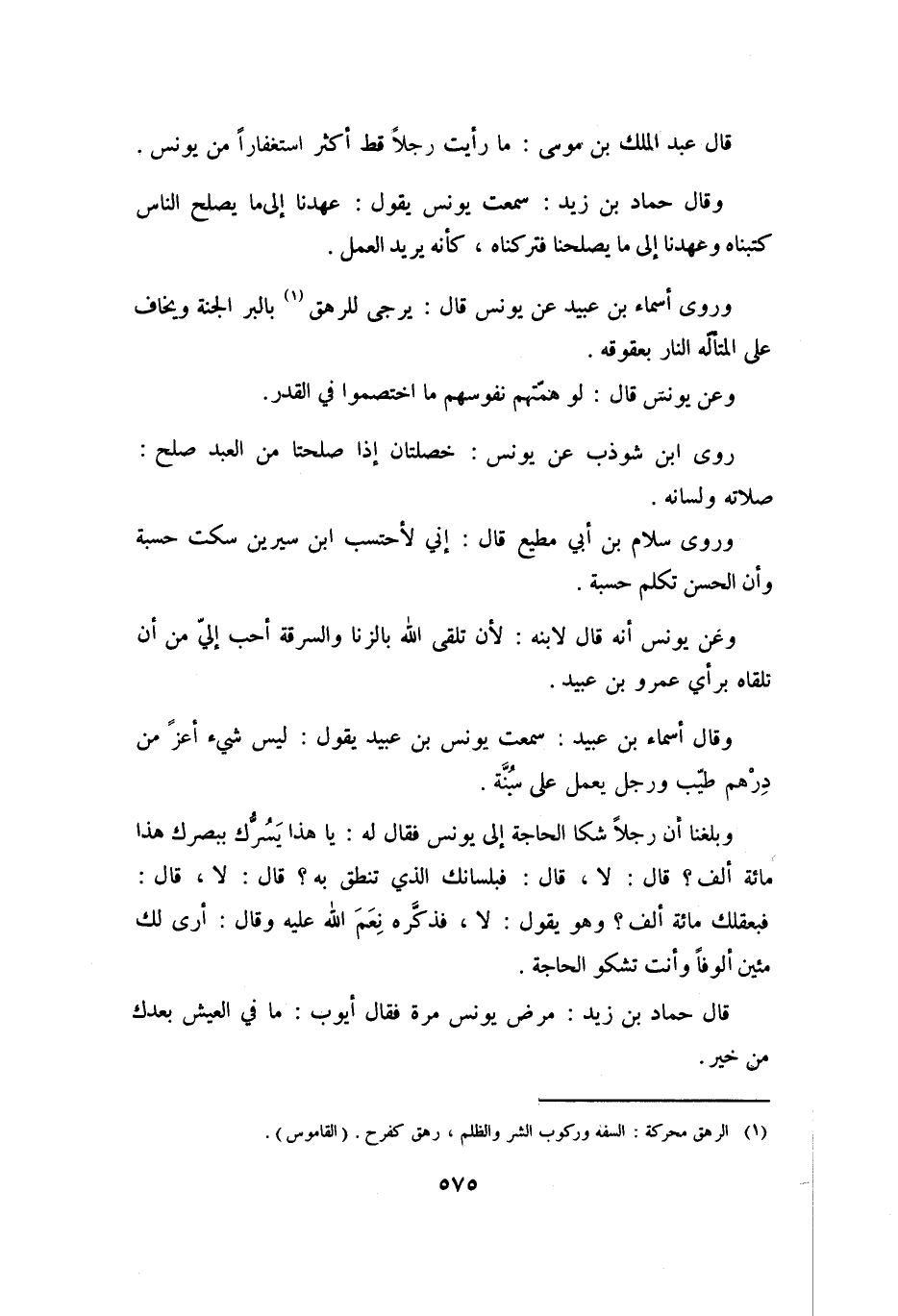 وروى أسماء بن عُبَيْد عن يونس قال: يرجى للرهق [1] بالبر الجنة ويخاف على المتأله النار بعقوقه.