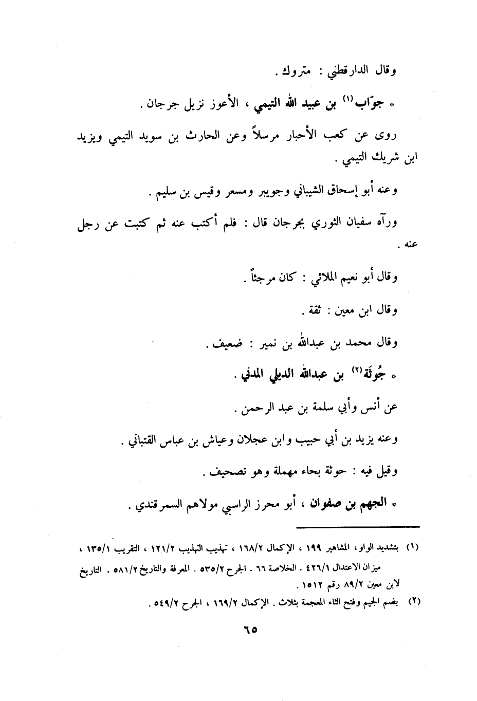 [1] بتشديد الواو، المشاهير 199، الإكمال 2/ 168، تهذيب التهذيب 2/ 121، التقريب 1/ 135، ميزان الاعتدال 1/ 426. الخلاصة 66. الجرح 2/ 535. المعرفة والتاريخ 2/ 581. التاريخ لابن معين 2/ 89 رقم 1512.
